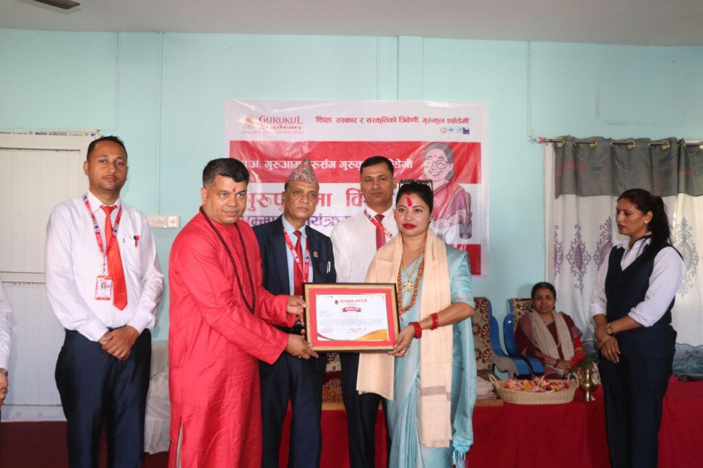 गुरुकुल एकेडेमीले यस वर्षको गुरुपूर्णिमालाई विशेष बनाउँदै दाङ जिल्लाका विभिन्न सामुदायिक विद्यालयका महिला प्रधानाध्यापकहरूलाई सम्मान गर्ने कार्यक्रम सम्पन्न गरेको छ। प्रधानाध्यापक गुरुआमाहरुसंग गुरुकुल एकेडेमी मार्फत आयोजित यस कार्यक्रममा शिक्षामा महिला नेतृत्वको भूमिकालाई सम्मान गर्दै महिला प्रधानाध्यापकहरूको योगदानको कदर गरिएको थियो। गुरुपूर्णिमाको अवसर पारेर महिला प्रधानाध्यापकहरूलाई सम्मान गर्नुको उद्देश्य शिक्षण क्षेत्रमा उनीहरूले पुर्‍याउँदै आएको समर्पण, लगनशीलता र नेतृत्व क्षमतालाई सम्मान गर्नु रहेको गुरुकुल एकेडेमीका अध्यक्ष ई अनन्तराज घिमिरेले बताउनुभएको छ ।