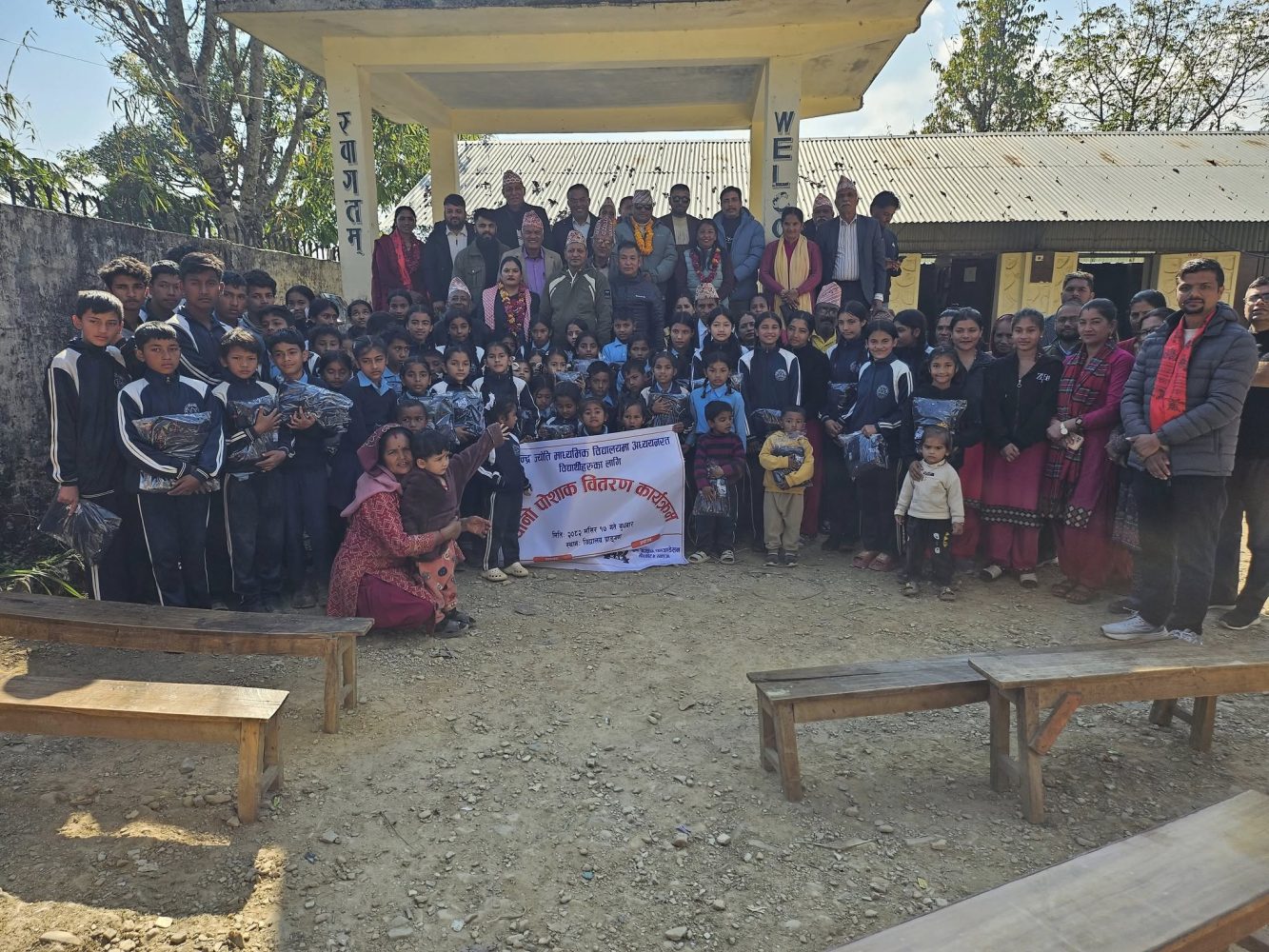 स्याङ्जाको भिरकोट नगरपालिका–७ स्थित महेन्द्र ज्योति माध्यमिक विद्यालयका विद्यार्थीहरूलाई खुमा अर्याल फाउन्डेसन स्याङ्जाले न्यानो पोशाक वितरण गरेको छ। बुधबार सम्पन्न कार्यक्रममा कुल ९३ जना विद्यार्थीलाई ट्र्याक सुट वितरण गरिएको विद्यालयले जानकारी दिएको छ। भिरकोट नगरपालिका–७ को आग्रहअनुसार विद्यालयमा अध्ययनरत गरिब, विपन्न तथा आर्थिक रूपमा कमजोर परिवारका विद्यार्थीहरूलाई लक्षित गरी पोशाक वितरण गरिएको फाउन्डेसनका अध्यक्ष लेखनाथ शर्माले बताए। उनका अनुसार फाउन्डेसनले मासिक रुपमा सञ्चालन गर्दै आएको सामाजिक योगदान कार्यक्रमअन्तर्गत यस महिनामा न्यानो पोशाक वितरण अभियानलाई प्राथमिकता दिइएको हो।