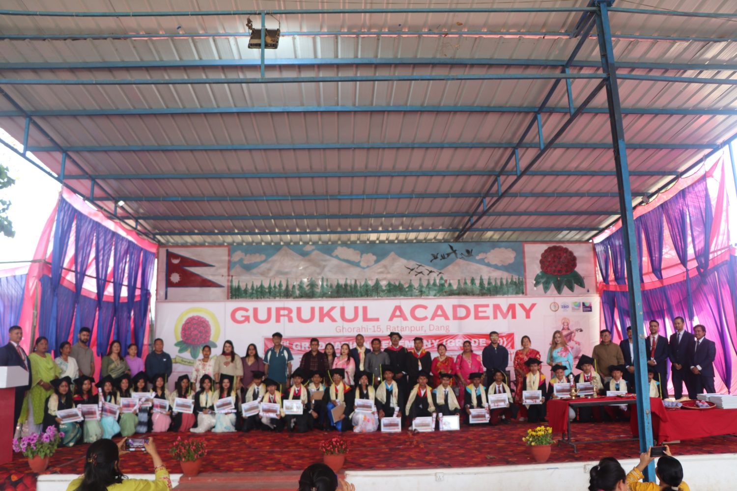 विद्यालय संयोजक भुवन आचार्यले स्वागत मन्तव्य राख्दै विद्यार्थीहरुको मेहनत र उपलब्धिको प्रशंसा गर्नुभयो। उहाँले विद्यालयले गुणस्तरीय शिक्षा प्रदान गर्दै विद्यार्थीहरुको सर्वाङ्गीण विकासमा निरन्तर लागिरहेको उल्लेख गर्नुभयो भने कार्यक्रमको सञ्चालन शिक्षक प्रकाश वलीले गर्नुभएको थियो। यस वर्ष गुरुकुल एकेडेमी घोराहीबाट कक्षा १० का दीक्षित हुने विद्यार्थीहरुको संख्या ५१ रहेको थियो। दीक्षान्त समारोहमा विद्यार्थीहरुलाई प्रमाणपत्र प्रदान गर्दै उनीहरुको आगामी यात्राका लागि प्रेरणा प्रदान गरिएको थियो। कार्यक्रममा विद्यार्थीहरुले सांस्कृतिक प्रस्तुति समेत राखेका थिए, जसले समारोहलाई अझ रमाइलो र स्मरणीय बनाएको थियो। समग्रमा कार्यक्रम उत्साह, उमंग र प्रेरणाले भरिएको एक सफल आयोजनाको रुपमा सम्पन्न भएको विद्यालयले जनाएको छ।